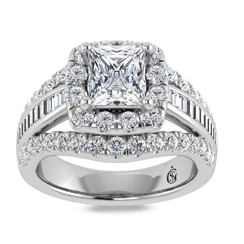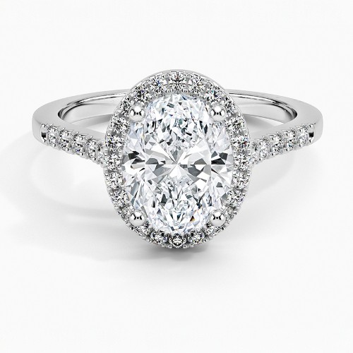 14K White Gold Lab Grown Diamond 4.50Ct.Tw. Shank Oval Shape Halo Engagement Ring